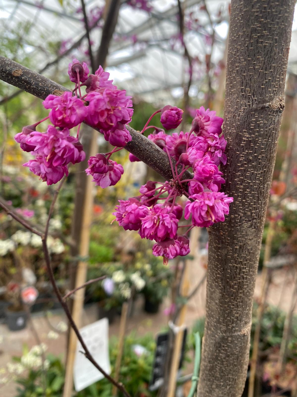 De Cercis canadensis is een sierlijke, bladverliezende boom of grote meerstammige heester uit Noord-Amerika, geliefd om zijn uitbundige voorjaarsbloei en decoratieve blad. In april en mei, nog voor het blad uitloopt, bloeit deze boom met talrijke kleine paarsroze bloempjes die direct op takken en stam verschijnen. Dit zorgt voor een opvallend en uniek effect. In de zomer volgt groot, hartvormig blad dat in de herfst prachtig goudgeel verkleurt. Met zijn compacte groei, hoge sierwaarde en opvallende structuur is Cercis canadensis een waardevolle blikvanger in elke tuin.