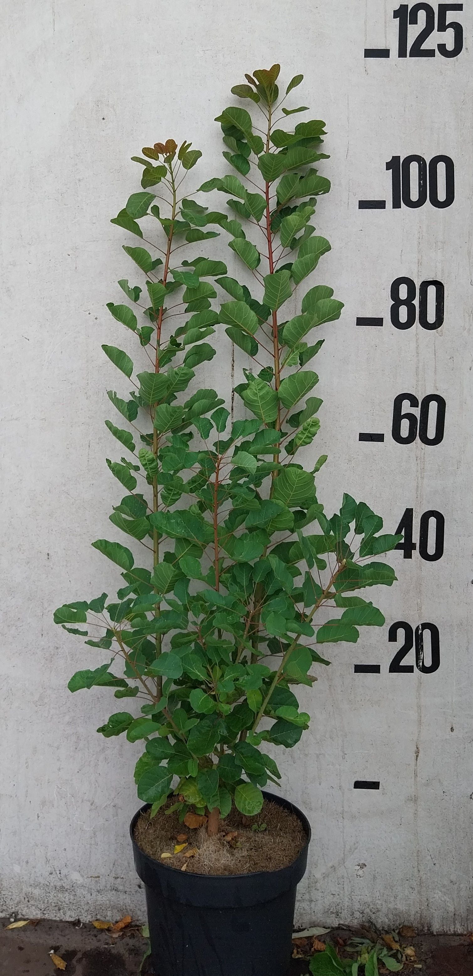 De Cotinus coggygria is een middelgrote, bladverliezende sierheester die bekend staat om zijn spectaculaire bloei en fraaie herfstverkleuring. In de zomermaanden (juni – juli) verschijnen er grote, wolkachtige bloempluimen in een roze tot purperen tint, die de plant zijn karakteristieke ‘pruikachtige’ uiterlijk geven. Het ovale blad is frisgroen van kleur, en kleurt in de herfst intens oranje, rood en geel. Deze robuuste struik heeft een brede, luchtige groeiwijze en vraagt relatief weinig onderhoud. De pruikenboom is zeer geschikt als solitair, maar kan ook in groepen of gemengde borders worden toegepast.